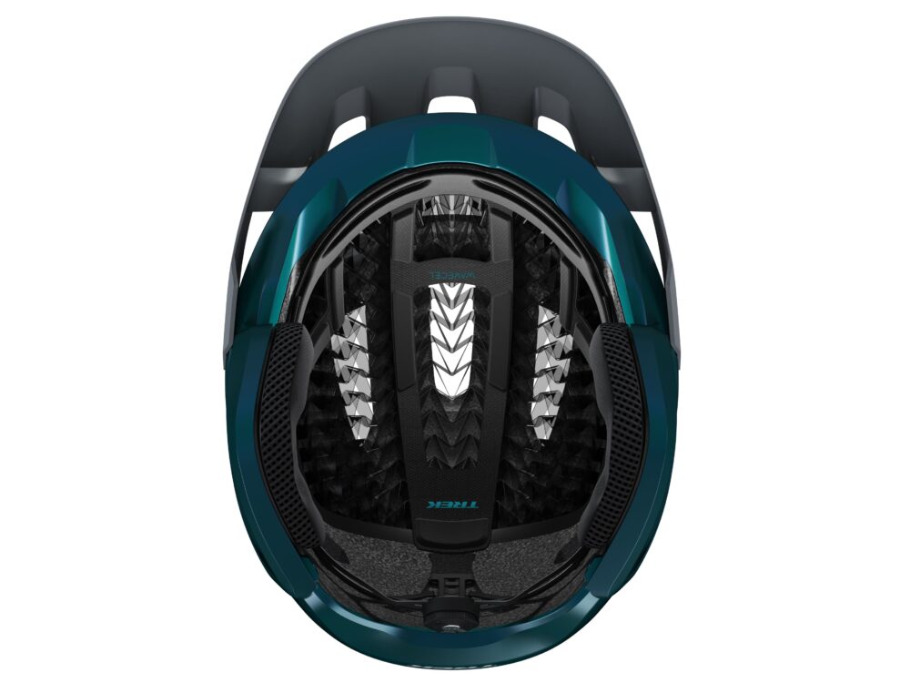 La visera de tres posiciones optimizada para usar gafas de montaña permite personalizar la cobertura, y gracias a su fijación magnética, se mantiene firme durante el pedaleo y se desprende en caso de sufrir una caída para tu seguridad.