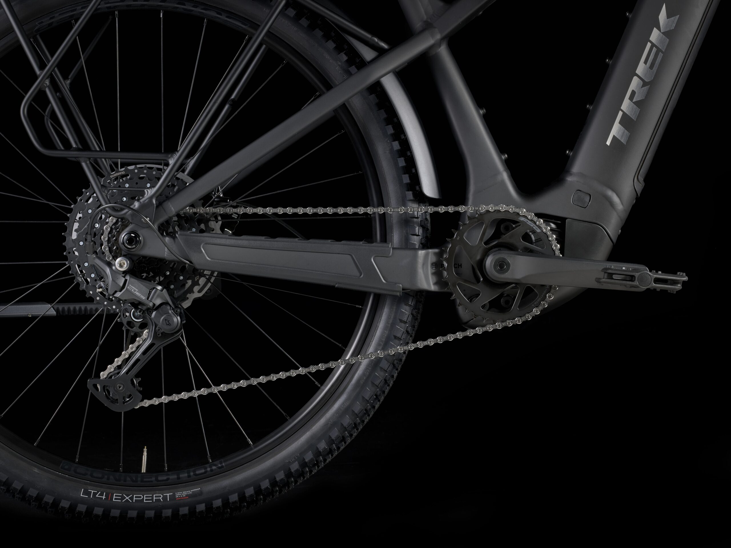 Un cuadro rígido de aluminio Alpha Platinum y una horquilla con suspensión SR Suntour de 120 mm y muelle de aire. Un potente motor Bosch Performance Line CX (85 Nm, 250 W), con una batería extraíble PowerTube RIB 2.0 de 600 Wh y un controlador Purion 200. Una transmisión Shimano CUES de 10 velocidades, frenos de disco hidráulicos Tektro para frenar con potencia y soportes para personalizar tu configuración. Y, además, luces, guardabarros y un portabultos trasero.