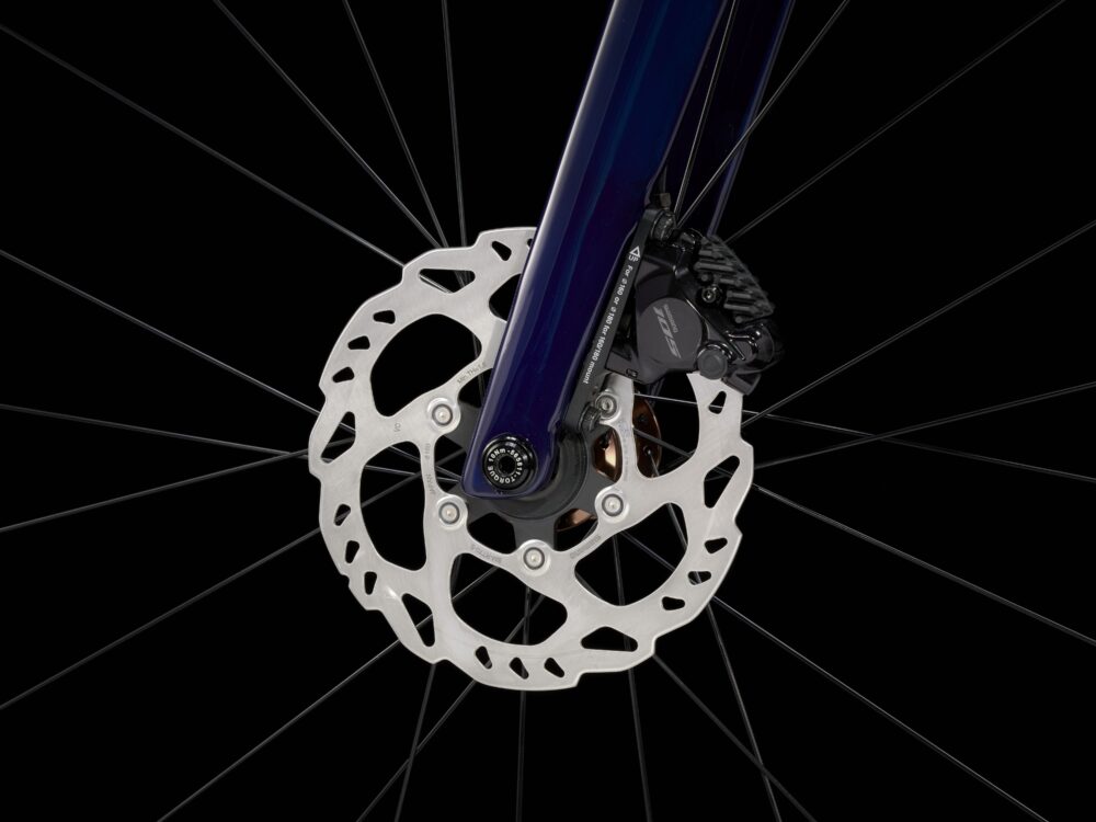 Cuadro y horquilla ligeros y aerodinámicos de carbono OCLV Serie 500, transmisión completa Shimano 105 de 12 velocidades, potentes frenos de disco hidráulicos Shimano flat mount, guiado interno de los cables que aporta una estética impecable, y ruedas Bontrager Paradigm SL Tubeless Ready.