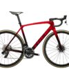 Cuadro de carbono OCLV Serie 800 aerodinámico y ultraligero por debajo de 700 gramos, una transmisión electrónica inalámbrica SRAM Rival AXS, potenciómetro Rival AXS, ruedas ligeras de carbono OCLV Bontrager Aeolus Pro 37 Tubeless Ready, un manillar/potencia aerodinámicos integrados de carbono OCLV Aeolus RSL, y potentes frenos de disco hidráulicos.