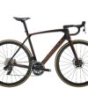 Cuadro excepcionalmente ligero y aerodinámico de carbono OCLV Serie 800 por debajo de los 700 gramos, horquilla íntegra de carbono, nueva transmisión electrónica inalámbrica Shimano Ultegra Di2 2×12, ruedas ligeras Bontrager Aeolus Pro 37 de carbono OCLV tubeless ready, sistema de manillar y potencia aerodinámico integrado Aeolus RSL de carbono OCLV y potentes frenos de disco hidráulico.