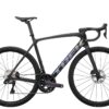 Cuadro excepcionalmente ligero y aerodinámico de carbono OCLV Serie 800 por debajo de los 700 gramos, horquilla íntegra de carbono, nueva transmisión electrónica inalámbrica Shimano Ultegra Di2 2×12, ruedas ligeras Bontrager Aeolus Pro 37 de carbono OCLV tubeless ready, sistema de manillar y potencia aerodinámico integrado Aeolus RSL de carbono OCLV y potentes frenos de disco hidráulico.