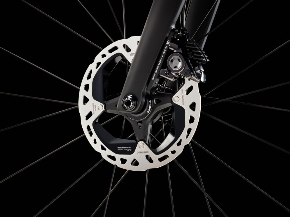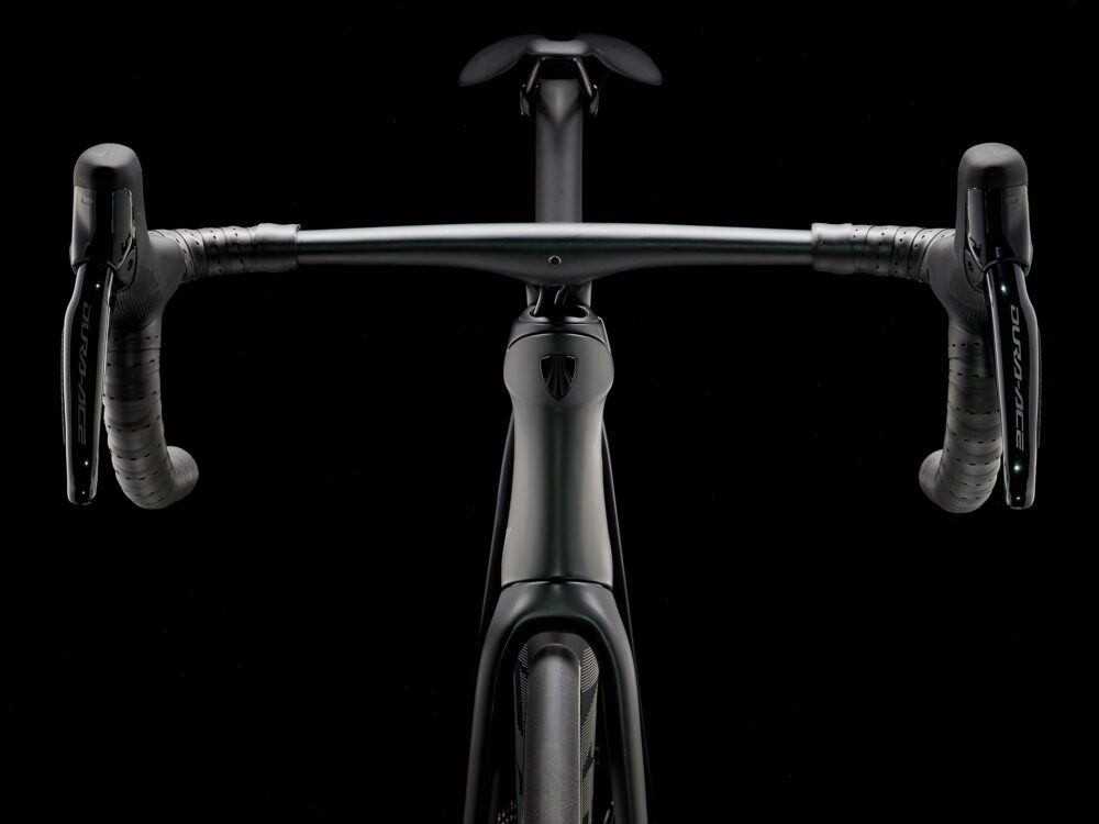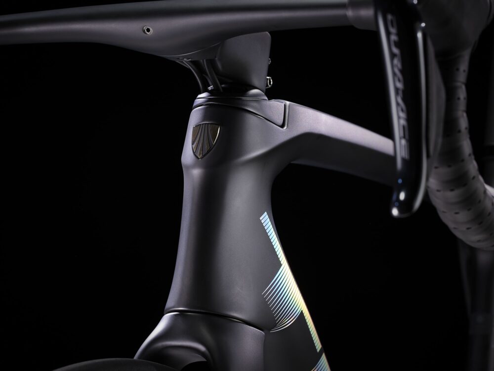 Cuadro de carbono OCLV Serie 800 aerodinámico y extremadamente ligero por debajo de 700 gramos, nueva transmisión electrónica inalámbrica Shimano Dura-Ace Di2 2×12, ruedas ultra ligeras, rápidas y estables Bontrager Aeolus RSL 37 de carbono OCLV tubeless ready, sistema de manillar y potencia aerodinámico integrado Aeolus RSL de carbono OCLV y potentes frenos de disco hidráulico.