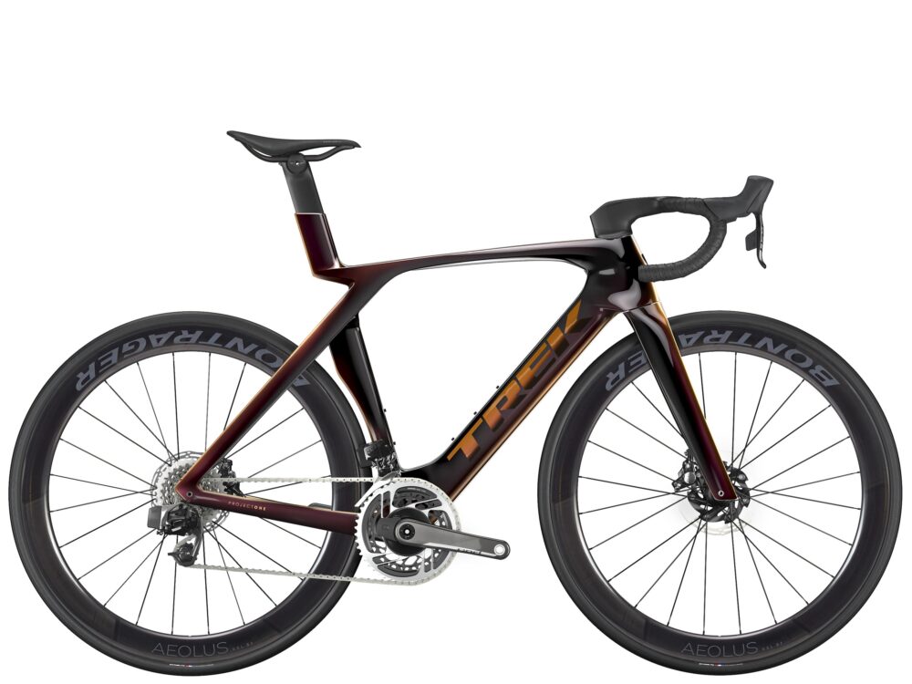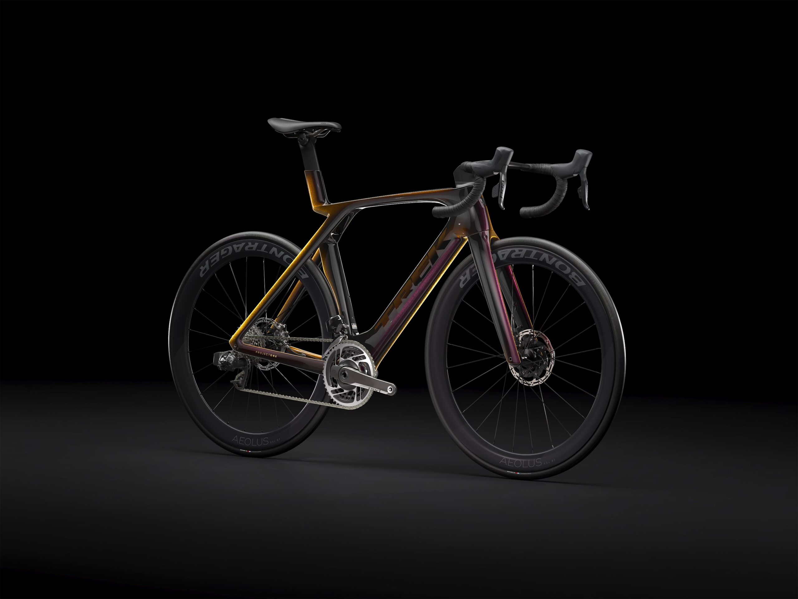 Cuadro ligero fabricado con nuestro carbono OCLV Serie 800 de más alto nivel, tubos con nueva forma aerodinámica Kammtail de nueva generación, tecnología IsoFlow aerodinámica que absorbe los impactos de la carretera y guiado de cables invisible. Una transmisión electrónica e inalámbrica SRAM RED AXS y frenos de disco hidráulicos flat-mount, bielas con medidor de potencia para hacer un seguimiento de las métricas de rendimiento, ruedas de carbono Bontrager Aeolus RSL 51 tubeless-ready y manillar/potencia integrados de carbono OCLV.