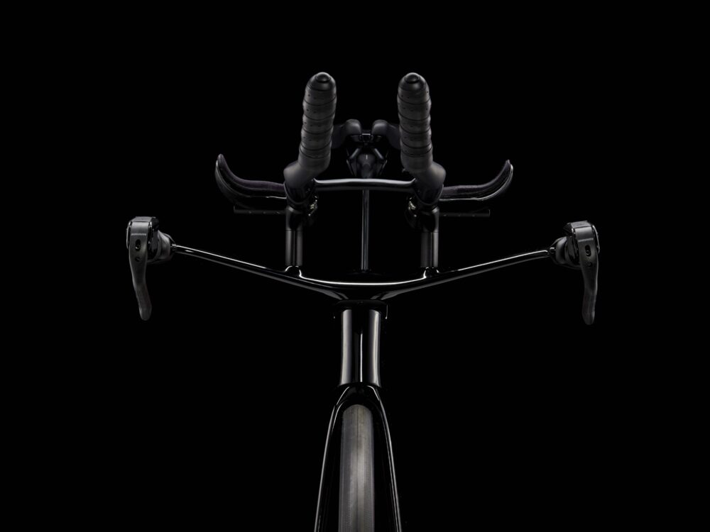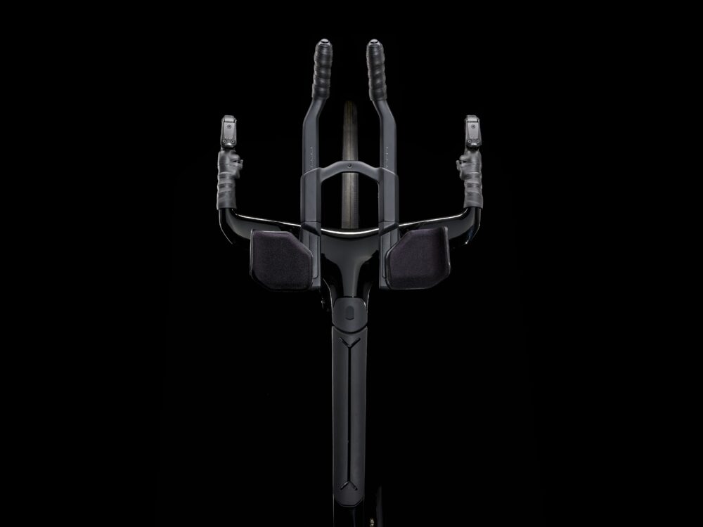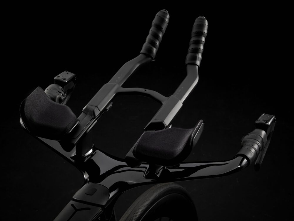 Cuadro increíblemente ligero de carbono OCLV Serie 800, tubos con diseño Kammtail Virtual Foil (KVF) que reduce la resistencia, horquilla aerodinámica íntegra de carbono Speed Concept, IsoSpeed para absorber los baches de la carretera, almacenamiento integrado para comida, hidratación y kit antipinchazos, transmisión electrónica inalámbrica SRAM Rival AXS de 12 velocidades con manetas de cambio SRAM AXS Blips que permiten mantener una postura aerodinámica mientras cambias, medidor de potencia Rival AXS, sistema de manillar y potencia completamente integrado, sillín específico de triatlón Bontrager Hilo Comp para adoptar una posi