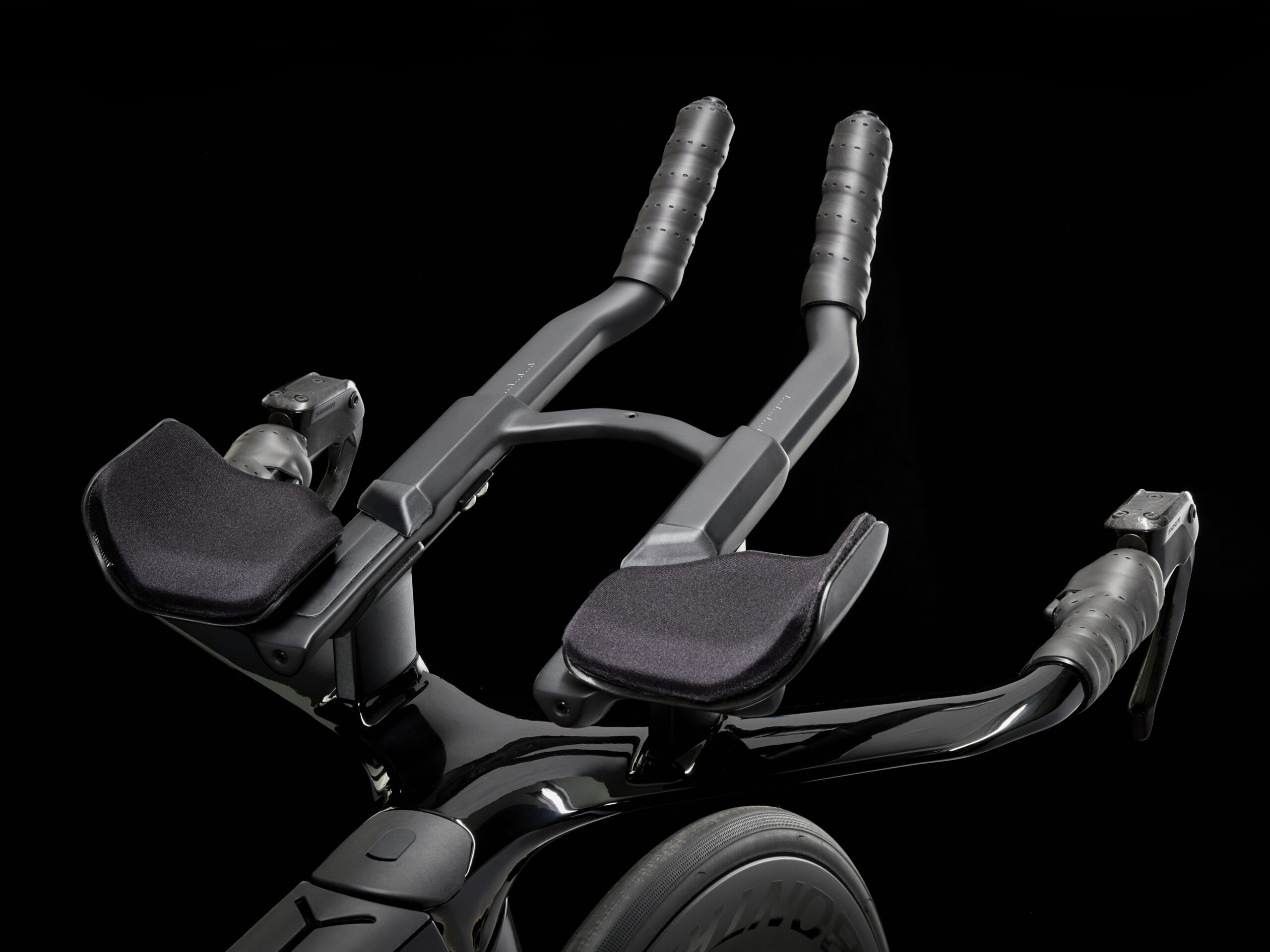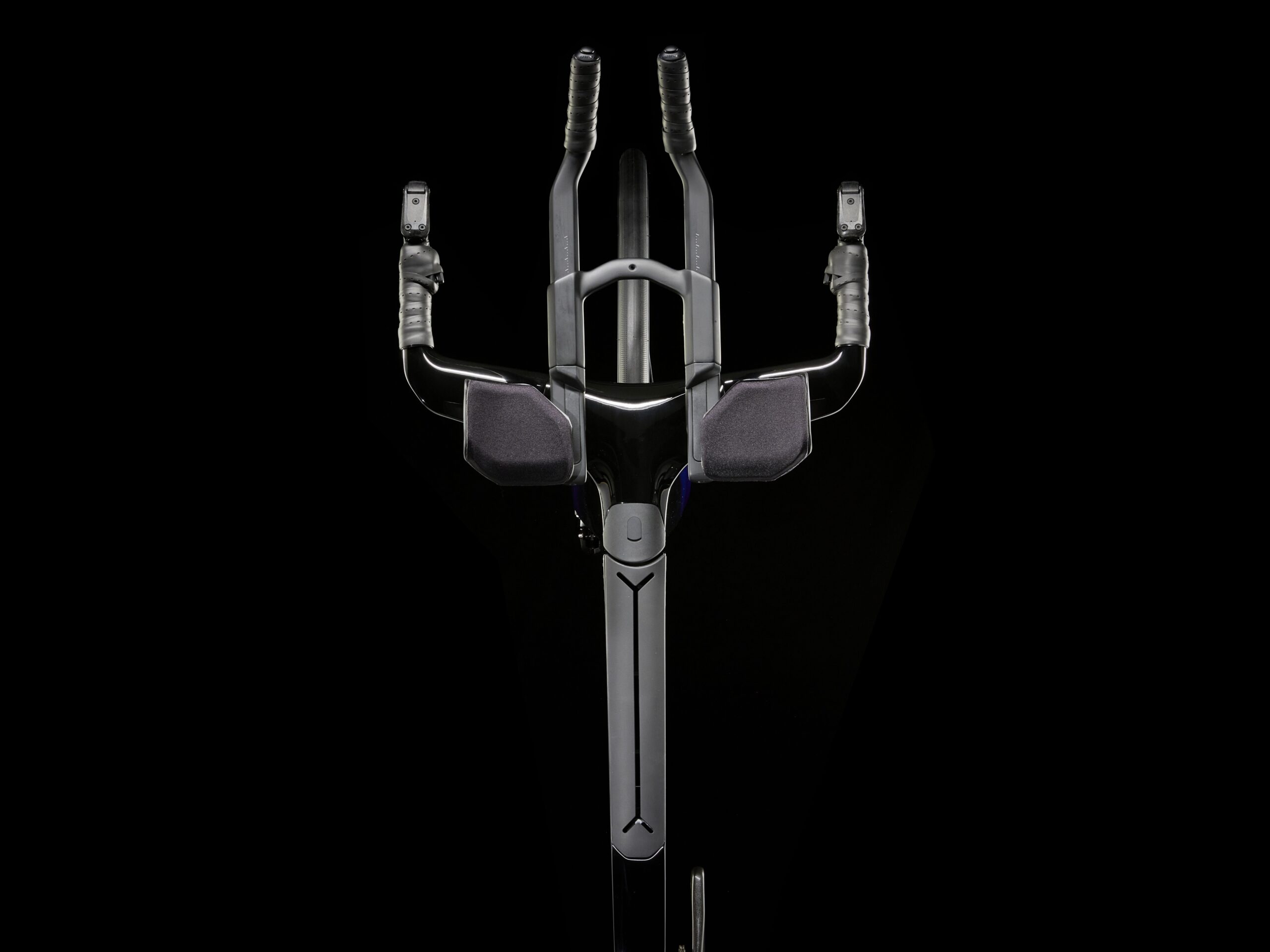 Cuadro ultraligero de carbono OCLV Serie 800, tubos con diseño Kammtail Virtual Foil (KVF) que reduce la resistencia, horquilla aerodinámica íntegra de carbono Speed Concept, IsoSpeed, almacenamiento aerodinámico e integrado para comida, hidratación y kit antipinchazos, transmisión electrónica inalámbrica SRAM Force AXS D2 de 12 velocidades con manetas de cambio SRAM AXS Clics, medidor de potencia Force AXS, potencia y manillar completamente integrados, sillín Bontrager Hilo Comp específico de triatlón que permite adoptar una postura aerodinámica agresiva, frenos de disco para una potencia de frenada fiable y ruedas de carbono O
