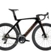 Cuadro ultraligero de carbono OCLV Serie 800, tubos con diseño Kammtail Virtual Foil (KVF) que reduce la resistencia, horquilla aerodinámica íntegra de carbono Speed Concept, IsoSpeed, almacenamiento aerodinámico e integrado para comida, hidratación y kit antipinchazos, transmisión electrónica inalámbrica SRAM Force AXS D2 de 12 velocidades con manetas de cambio SRAM AXS Clics, medidor de potencia Force AXS, potencia y manillar completamente integrados, sillín Bontrager Hilo Comp específico de triatlón que permite adoptar una postura aerodinámica agresiva, frenos de disco para una potencia de frenada fiable y ruedas de carbono O